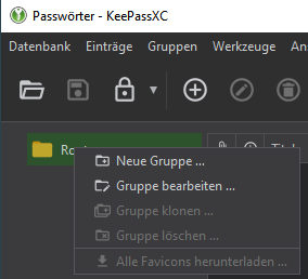 Hier können Sie Unterordner anlegen und bearbeiten um Ihre Passwortablage zu strukturieren.