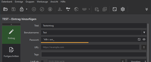 - Titel: Der Eintrag erhält diesen Namen und wird in der Ordnerstruktur mit diesem dargestellt.